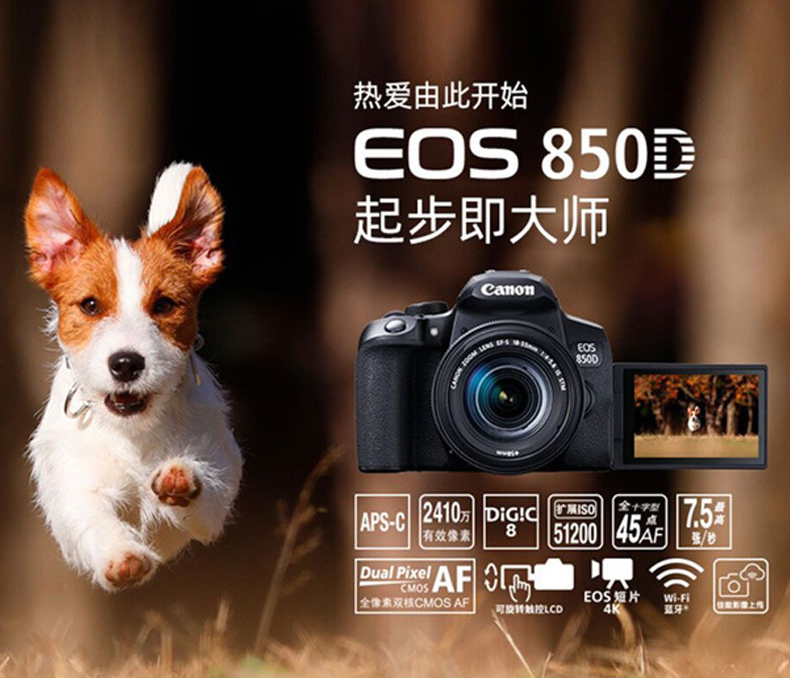 佳能850D單反相機 高清旅游Vlog數(shù)碼4K視頻學生款入門級 eos 850d